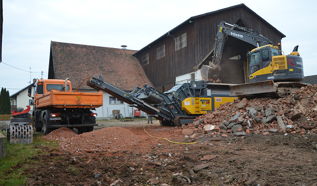 Abbruch Landwirtschaftliches Gebäude mit Unterkellerung,Abbruch Jungviehstall, Abbruch von zwei Güllegruben, Direkte Aufbereitung des Abbruchmaterials als Rohstoffrückgewinnung