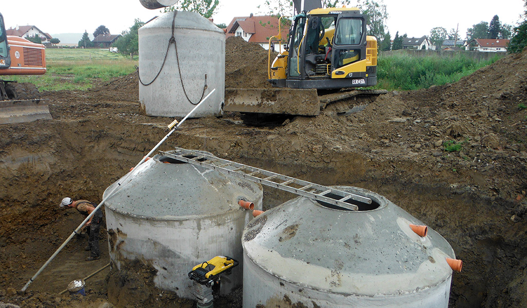 Kompletter Erdbau zur Erstellung eines zusätzlichen Rindstalles, Erschließung der Stallung, Einbau von drei parallel geschalteten Gärsaftbehältern