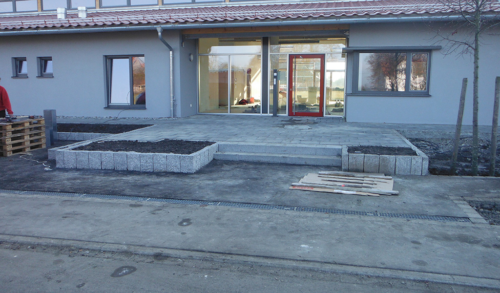 Jahr2013-2014ProjektLandschaftsbau: Kindergarten SalgenArbeitenHilfestellungen und Tätigkeiten zur Erstellung der Außenanlagen in Zusammenarbeit mit den gemeindlichen Helfern, Einfassungen, Terrassenflächen, Zugangsbereiche in Naturstein und Asphalt, Spielzonen, Anteilige Erschließung